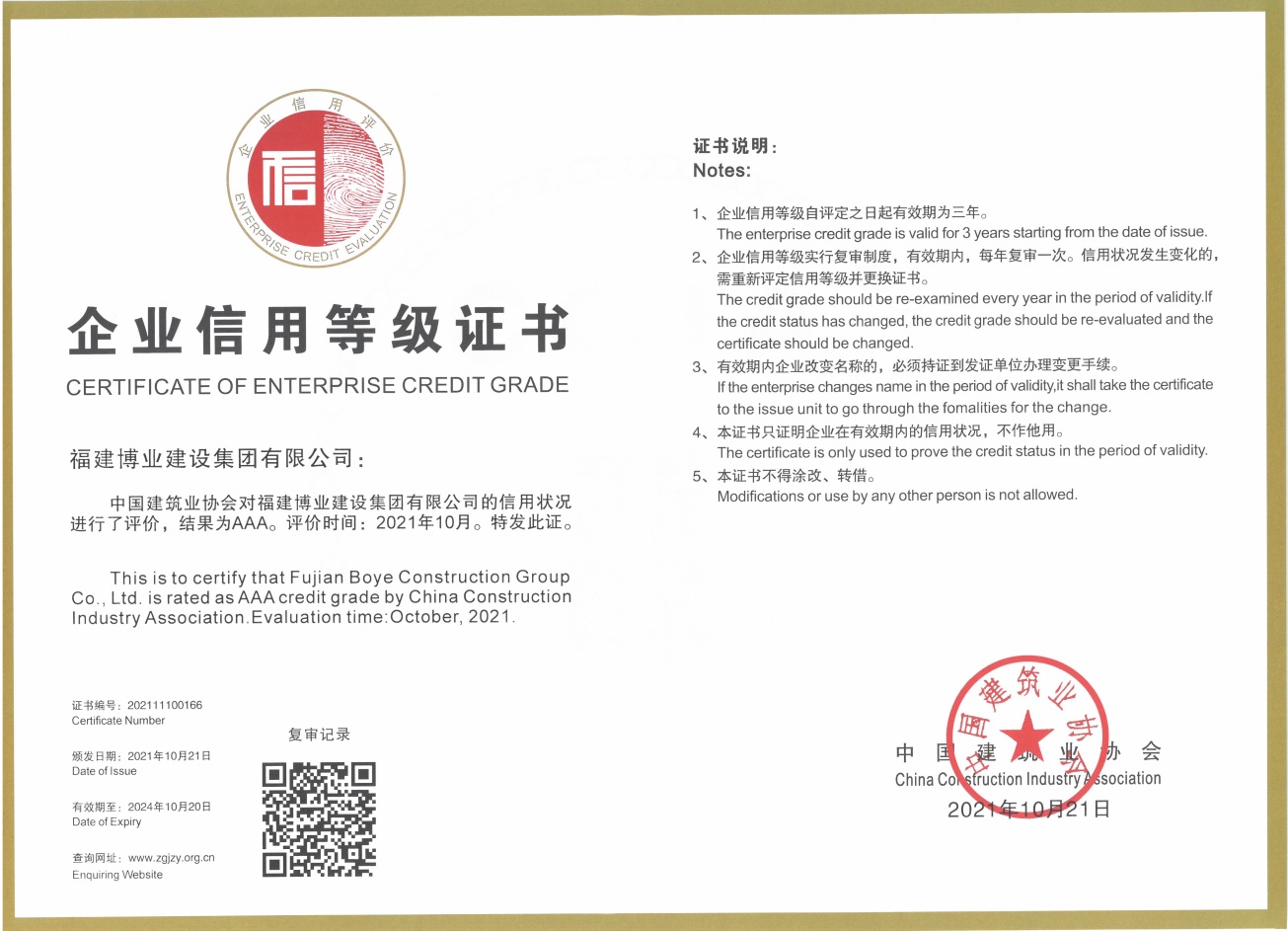 中施企协信用评价AAA