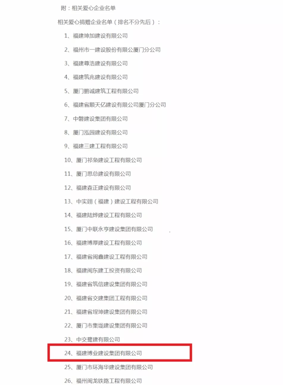 近日,我司通过厦门市建筑行业协会对接武汉市建筑业协会、厦门市红十字会、厦门市圆梦扶贫基金会等单位进行捐资,用于厦门、湖北武汉的新型冠状病毒感染肺炎疫情防控专项使用。在此,向所有奋战在疫情一线的医务人员及所有坚守岗位共抗疫情的各界人士致敬!