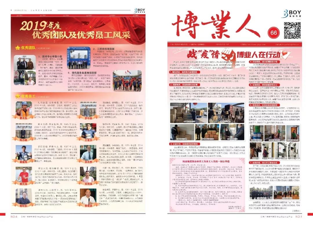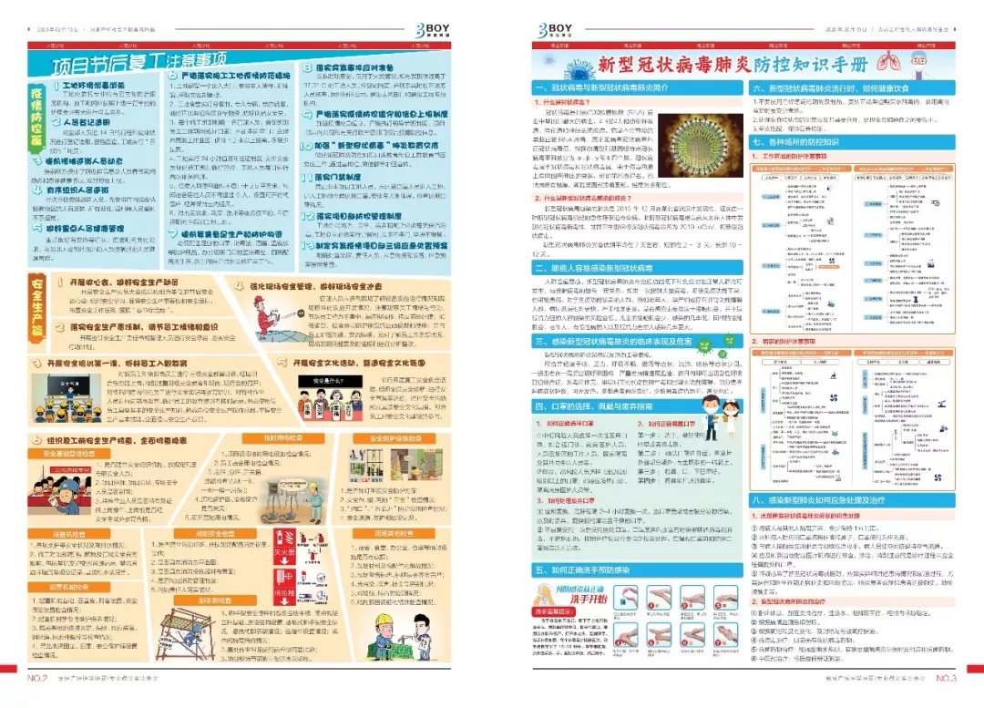 疫情期间,公司组织编辑并提前发行企业内刊《博业人》,专版策划《项目节后复工注意事项》、《新型冠状病毒肺炎防控知识手册》等版面内容。同时,通过企业网站、广告机、海报等各类媒介加强疫情防控宣传,总部及各项目在办公区、出入口等区域显著位置张贴宣传海报和滚动播放防疫知识宣传视频,切实提高员工的防范意识和群防群控的自觉性。